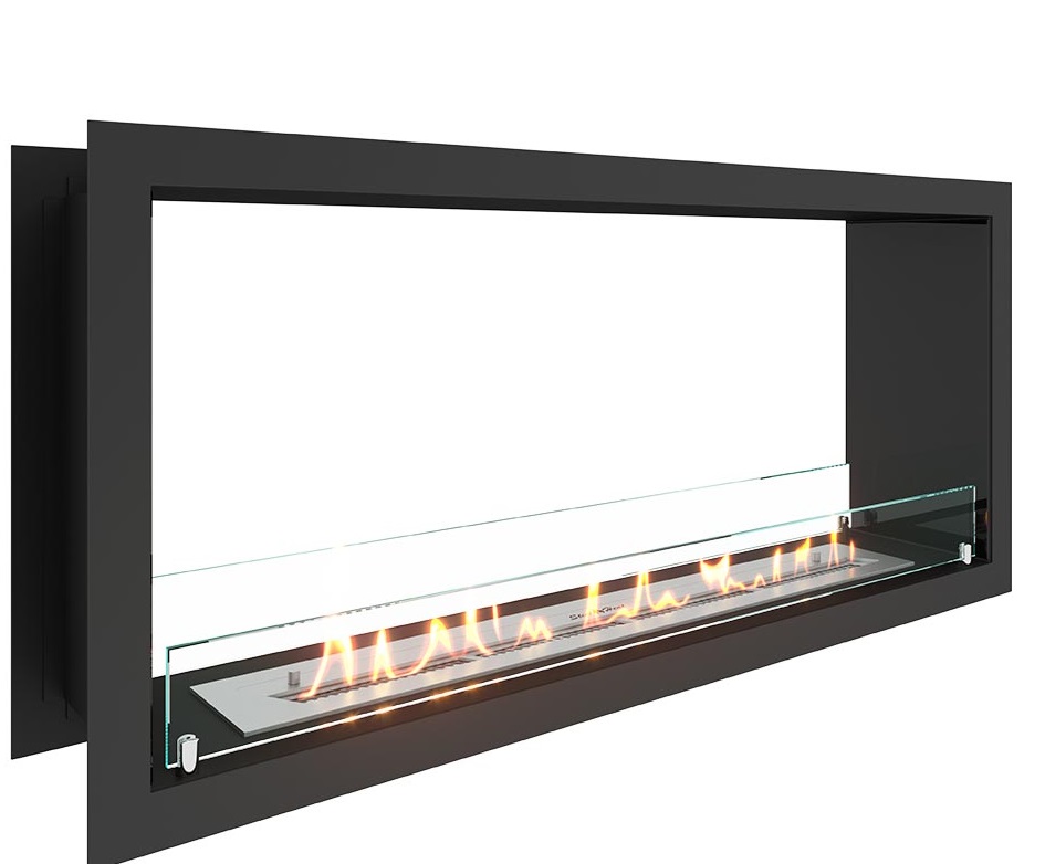 Гипермаркет «ВамКамин» предлагает два типа двусторонних биокаминов — сквозные и угловые. Первые встраиваются в перегородку между комнатами, создавая «огневое окно». Сквозной камин хорош тем, что дает больше световых лучей, освещающих затененные зоны сразу двух помещений.