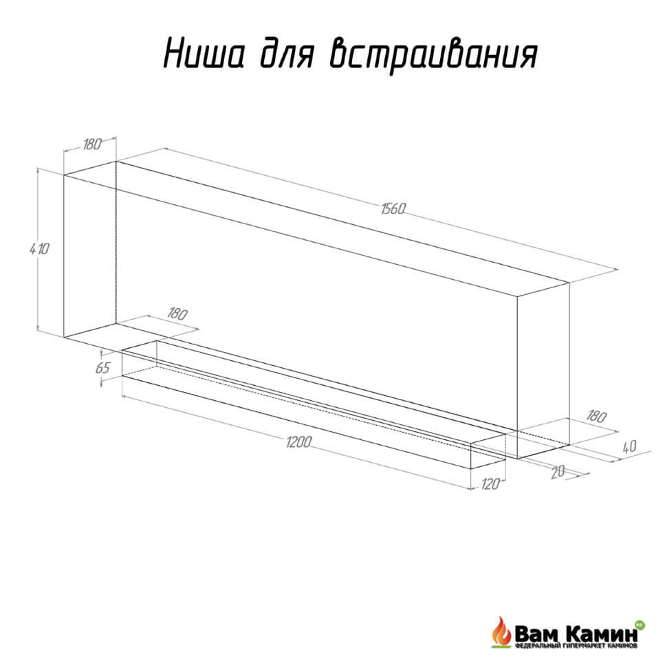 Встраиваемый биокамин FLAGMAN 1600 предназначен для встраивания в глухие ниши из гипсокартона, кирпича, пеноблоков, бетона.