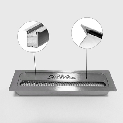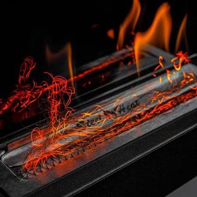 Защитное, закаленное стекло и стемалит на задней стенке очага создают зеркальное отражение и придают пламени увеличенный объем.