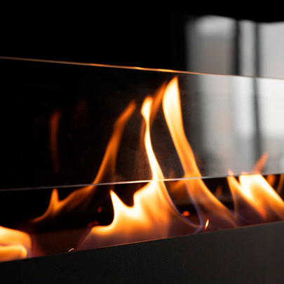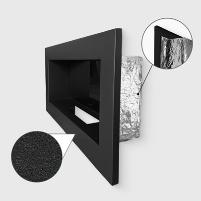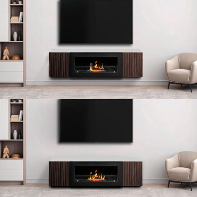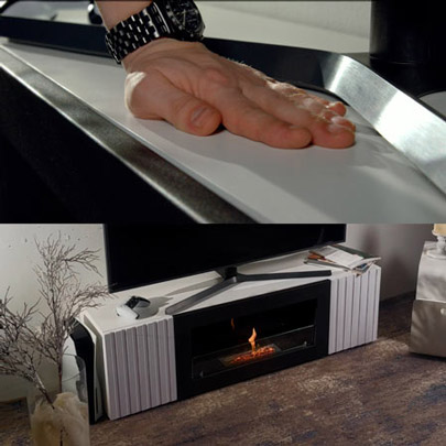Очаг биокамина покрыт огнеупорной порошковой краской и оснащен теплоизоляцией, которая защищает стену и тумбу от нагрева.