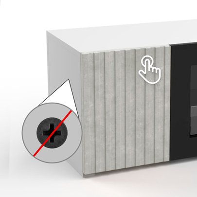 Дверцы тумбы имеют push-to-open систему и открываются легким нажатием. При закрытии дверца не издает громких звуков. Корпус не имеет видимых следов крепежа.